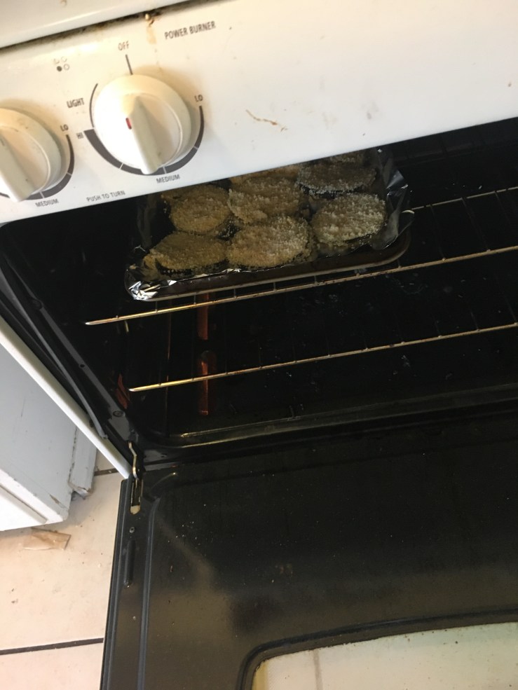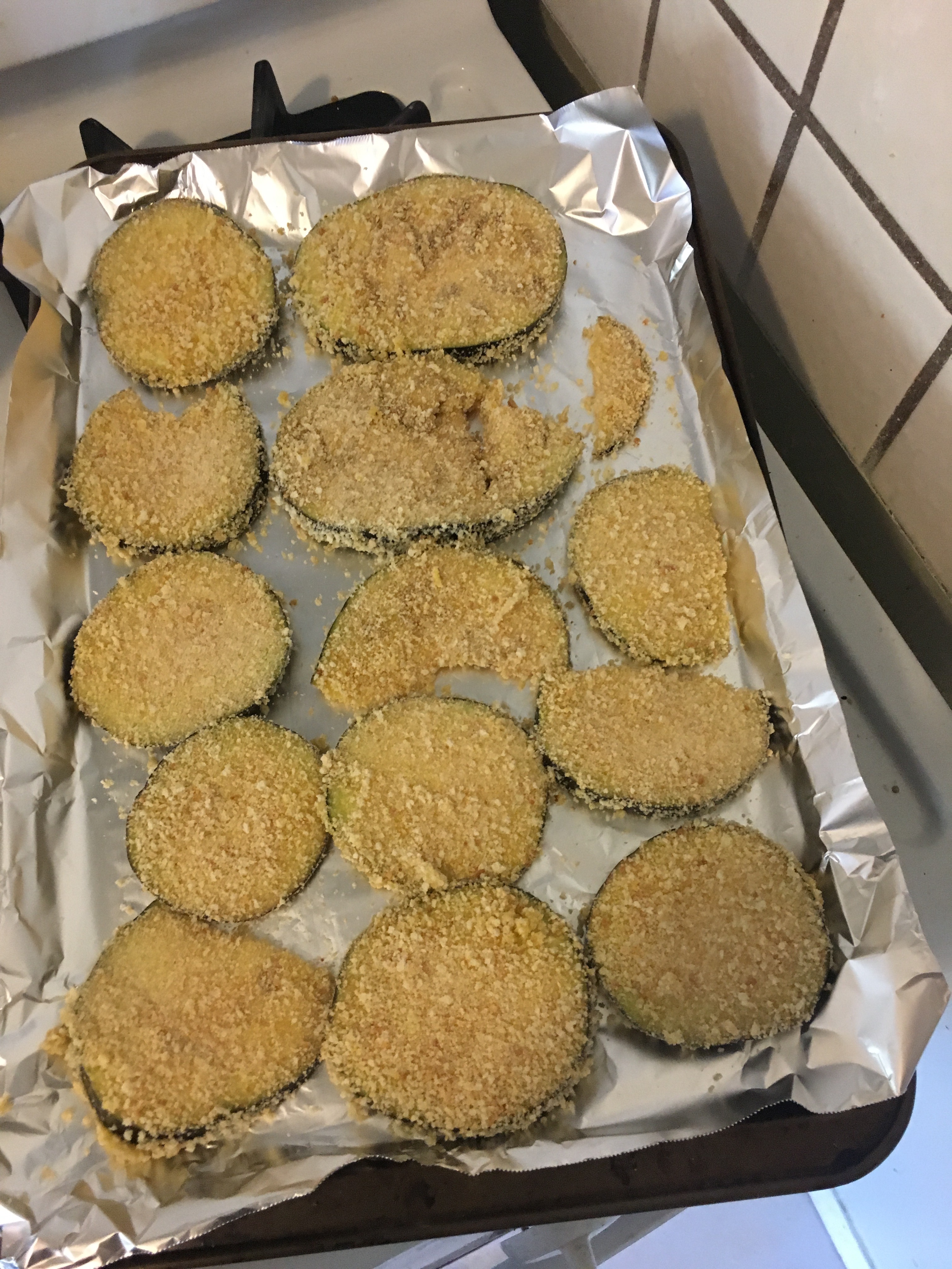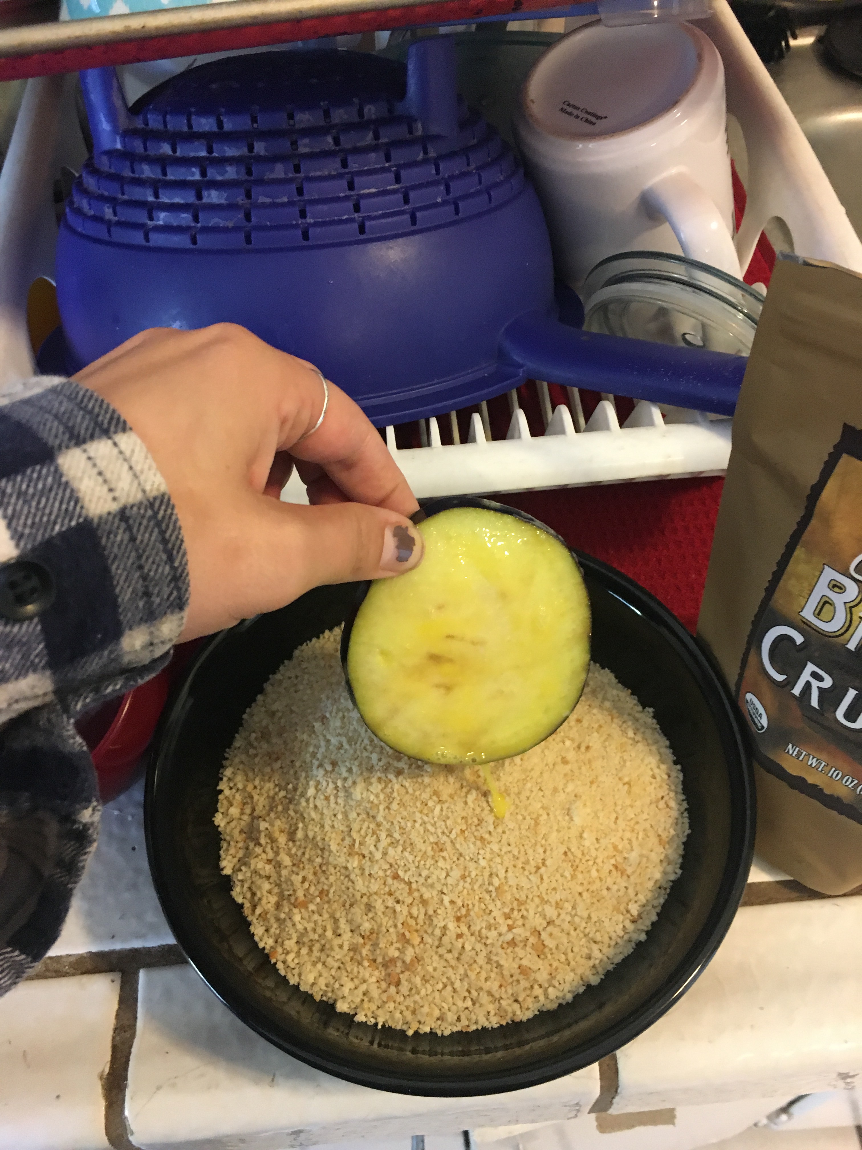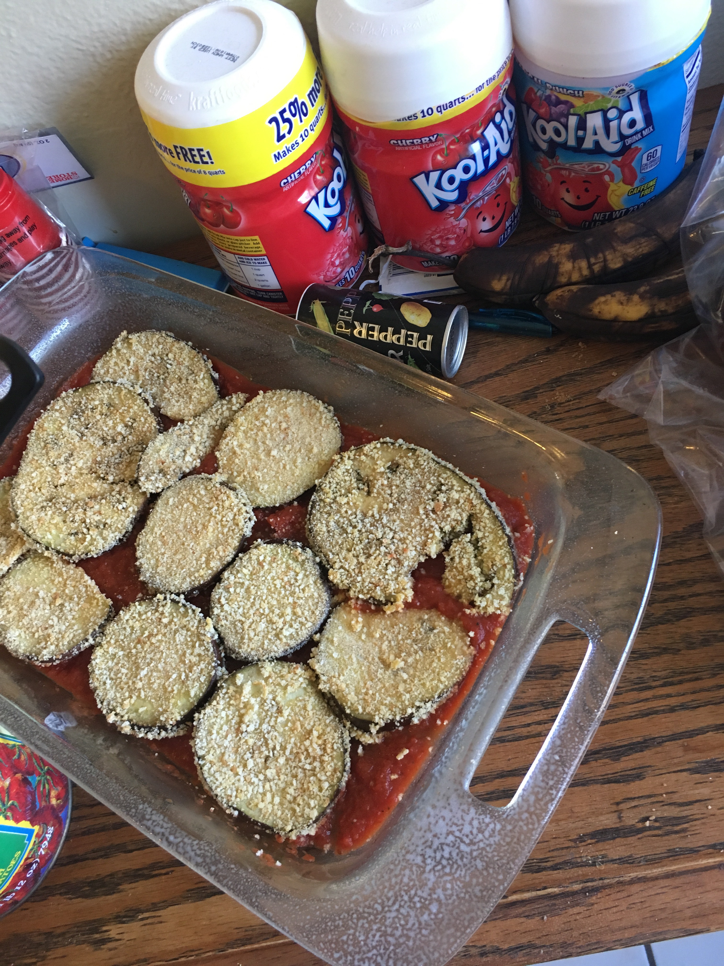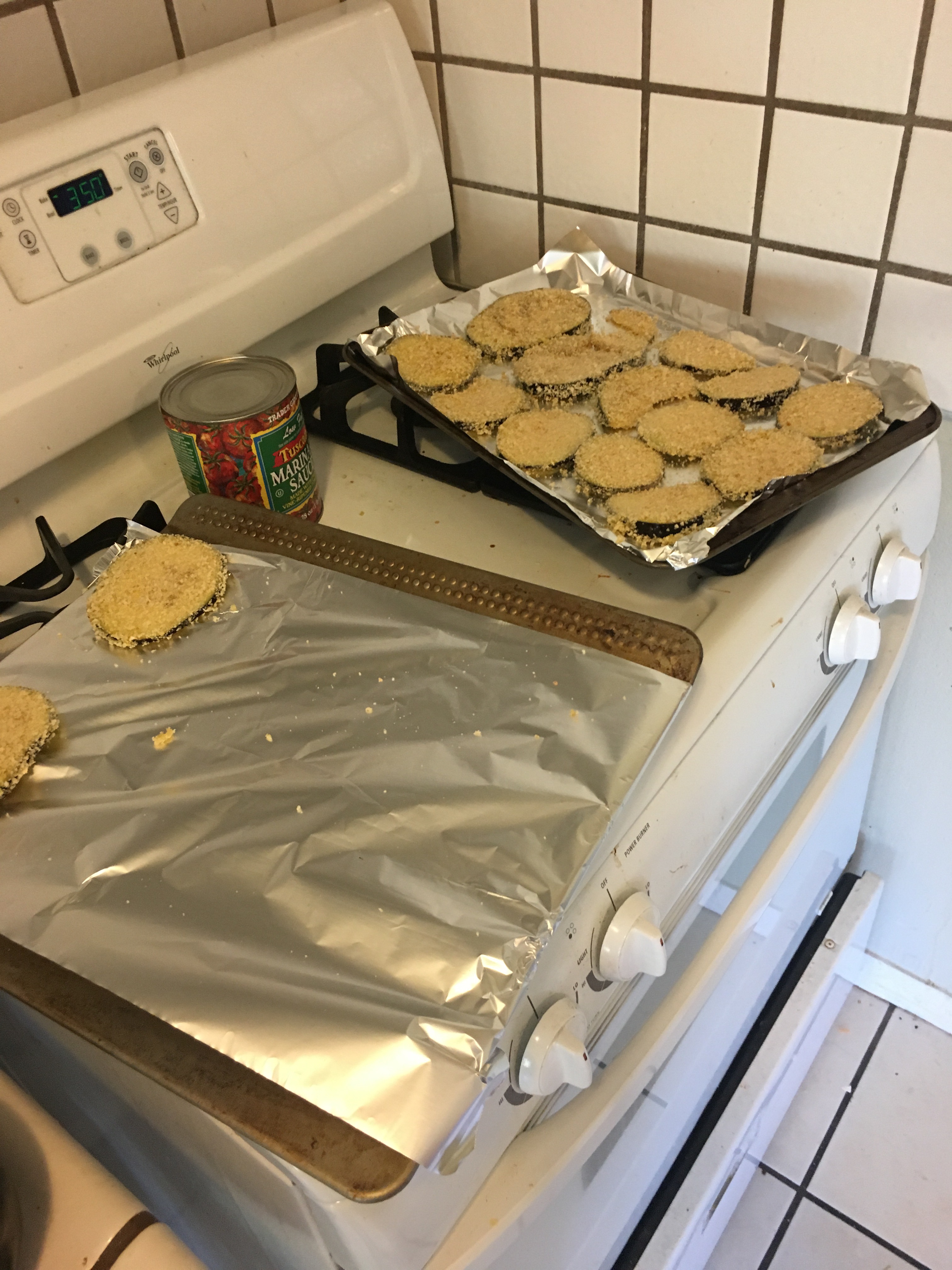 It was a failure, let’s be real. Don’t used canned sauce, and don’t just get plain bread crumbs, and also, it’s essential to really slice those eggplant slices nice and thin.