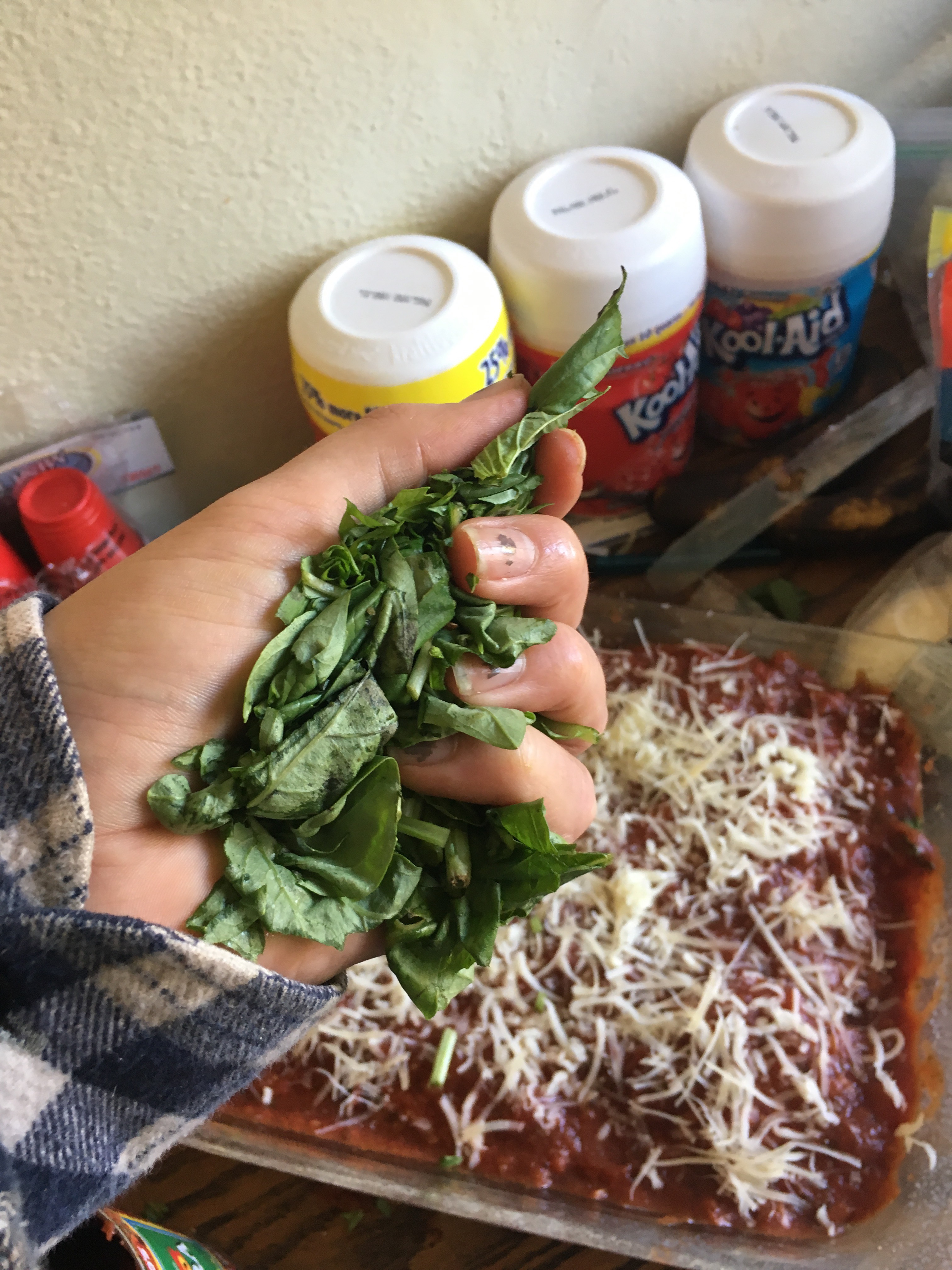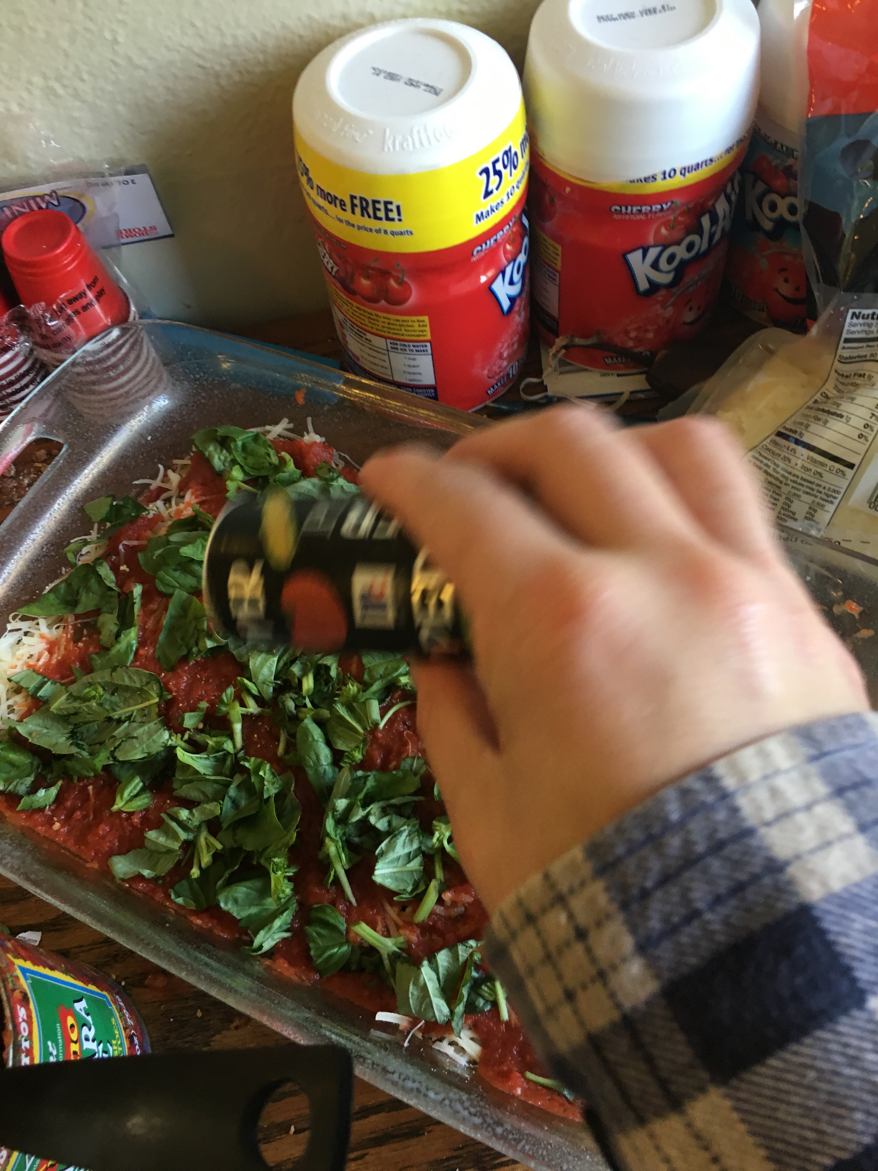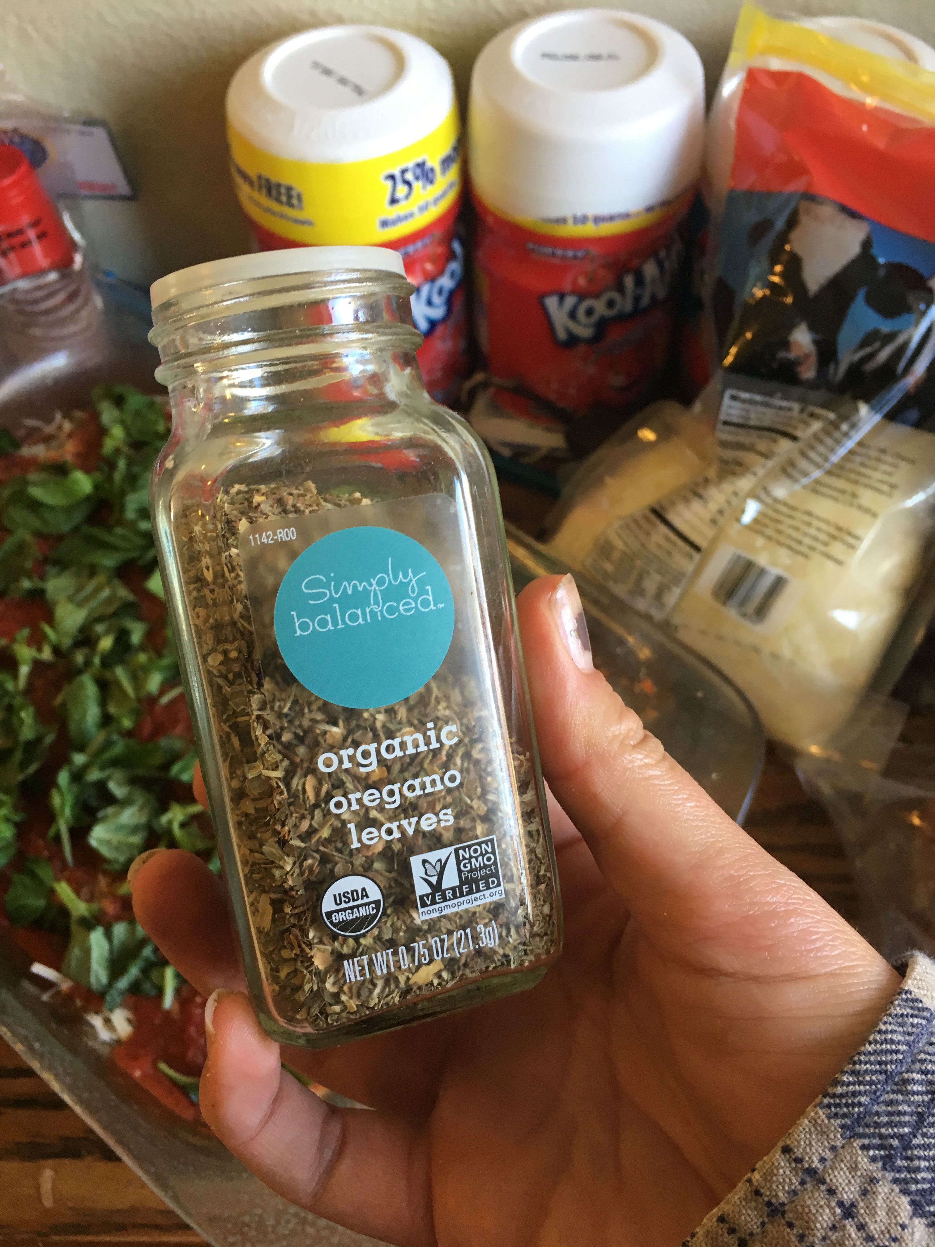 10. After the tomato sauce base, it is optional, but because I like to keep it nice and spicey in my life, I add in all the flavor flavzzz. Time to add in chopped fresh basil, oregano, seasoned salt, pepper, and some sundried tomato…Yeah, it’s kind of weird, but so am I and I thought the flavors would work… oh whale.