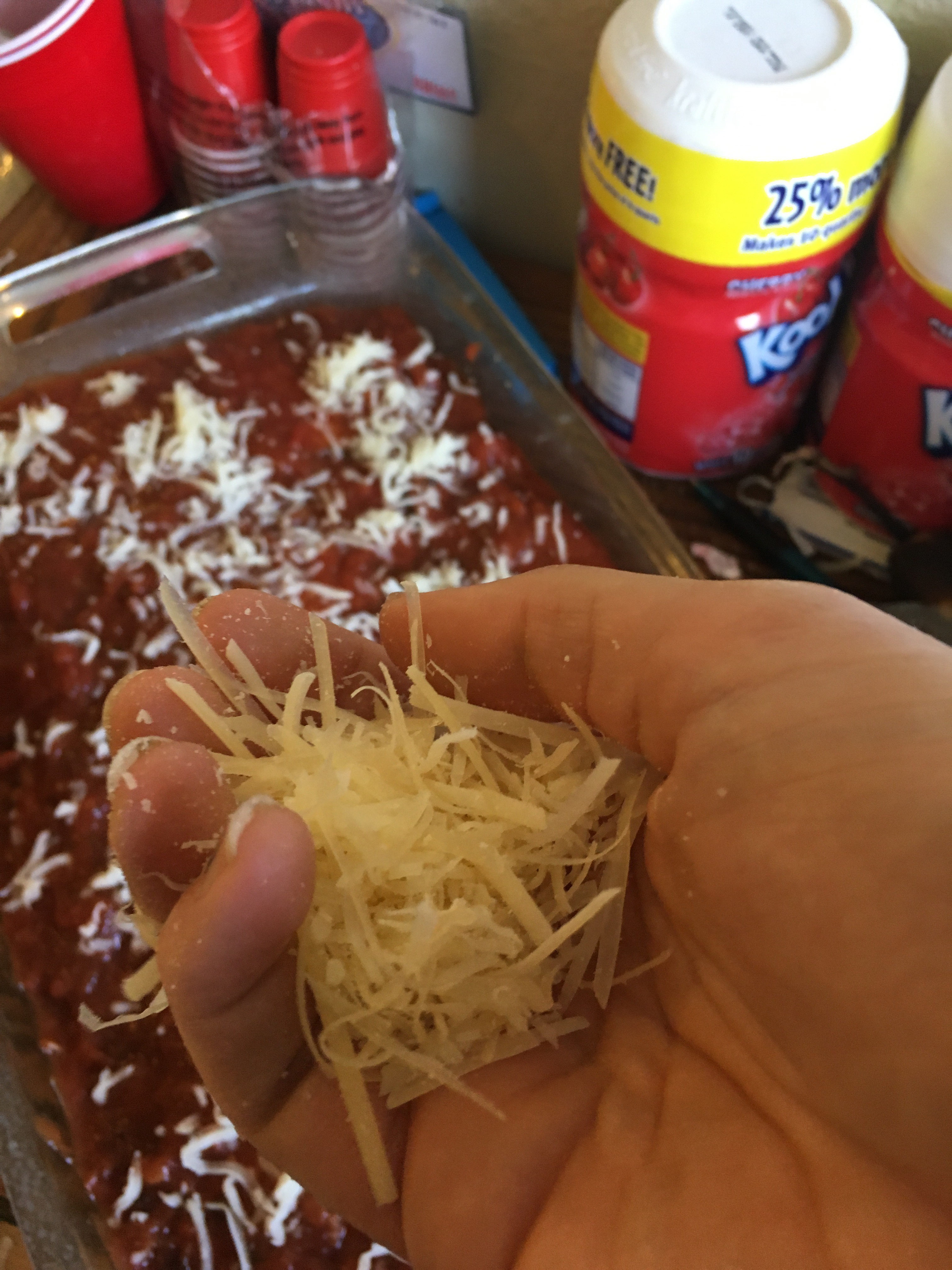 • and finally, the star of it all: one 12 ounce package of parmesan cheese all shredded up ready to eat.